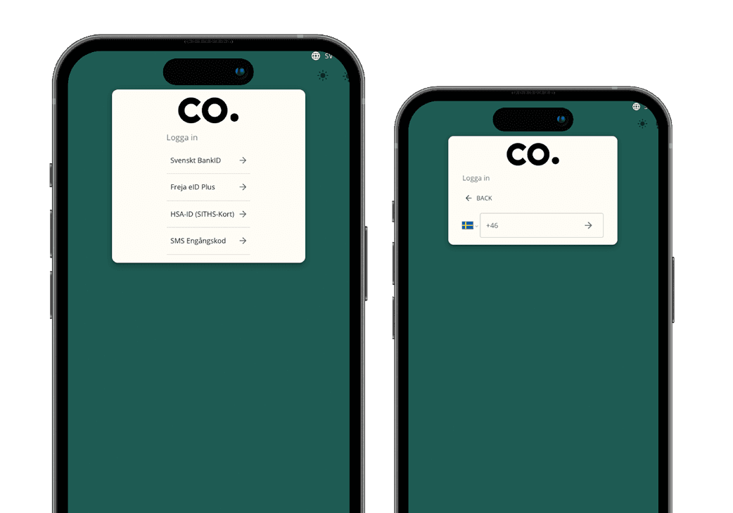 You can choose the authentication methods you want to use, such as BankID, Freja eID, and SITHS card, or SMS code.